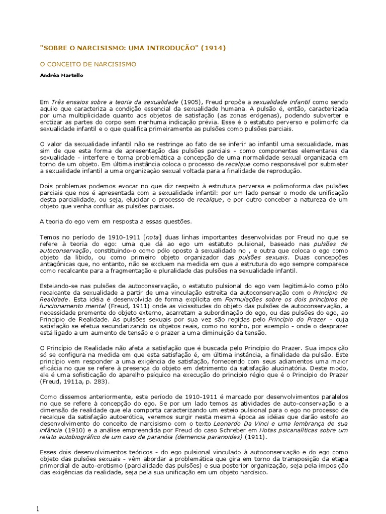 Narcisismo Introdução Resumo | PDF | Libido | Sigmund Freud 😈