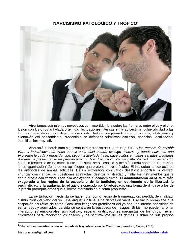 Narcisismo Patologico y Trofico HORNSTEIN, LUIS | PDF | Narcisismo ... 😈