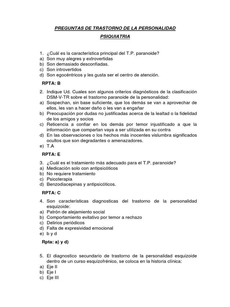 Cuestionario Transtorno de La Personalidad | Desorden de personalidad ... 😈