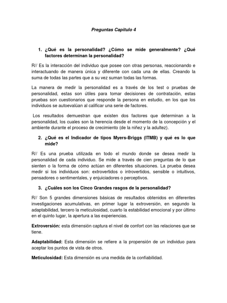 Preguntas Capitulo 4 | Narcisismo | Comportamiento 😈