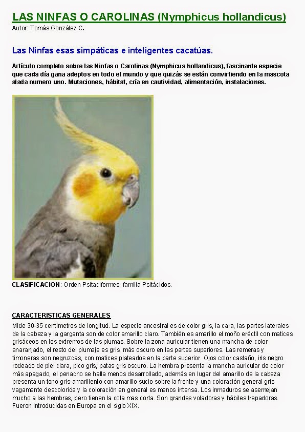 NINFAS y CAROLINAS: CURIOSIDADES Y COMPORTAMIENTOS 馃槇