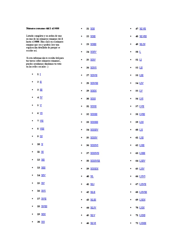 Números Romanos Completos del 1 al 5000 » Sistéma de Numeración Romana ... 😈