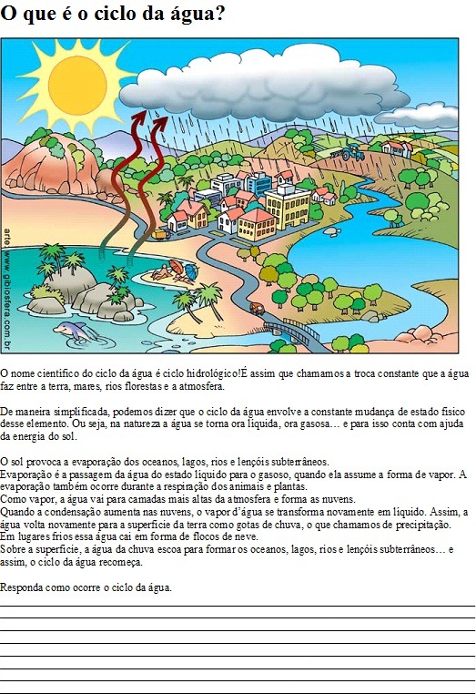 O ciclo da água na natureza Texto e atividade in 2020 ... 😈