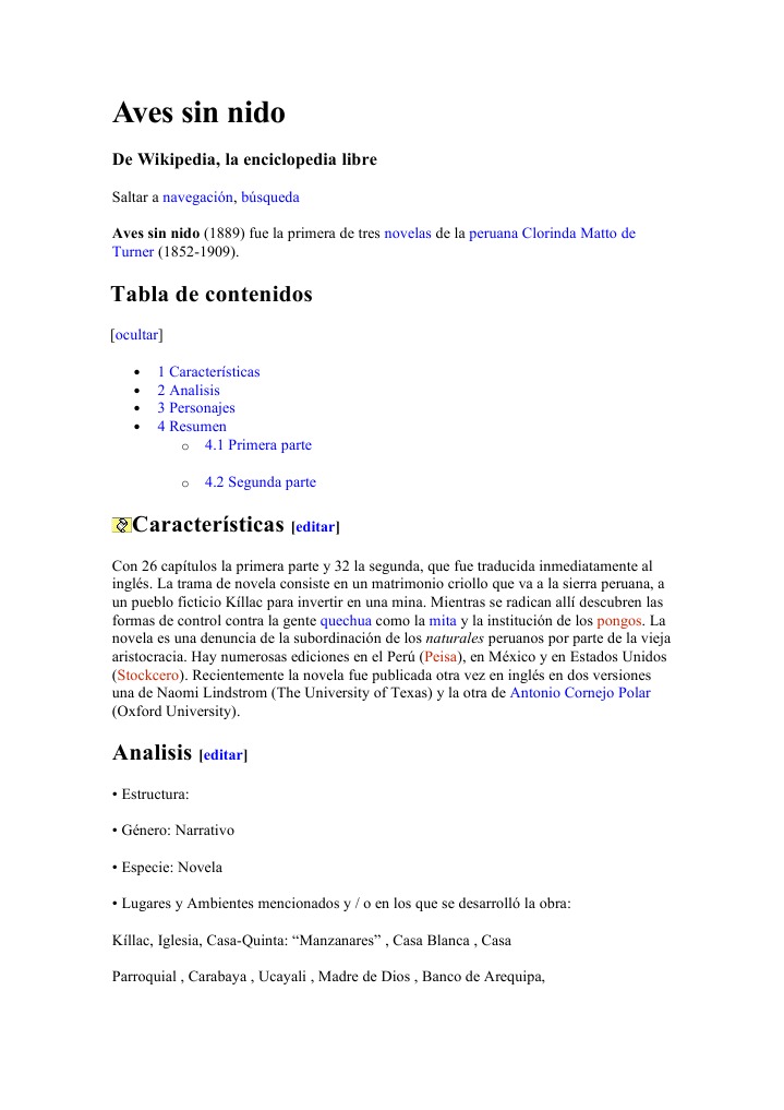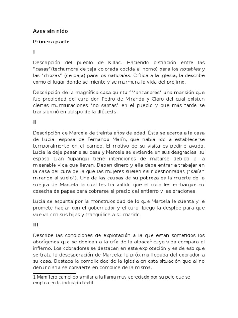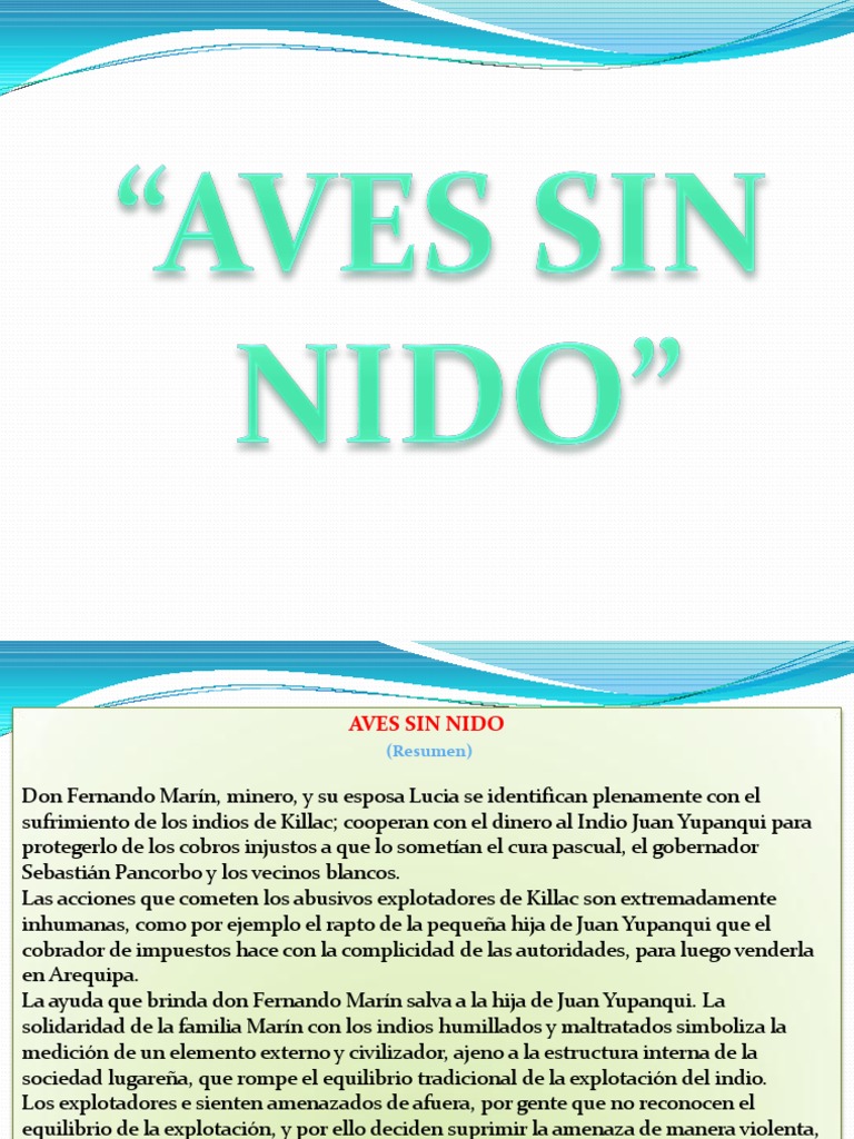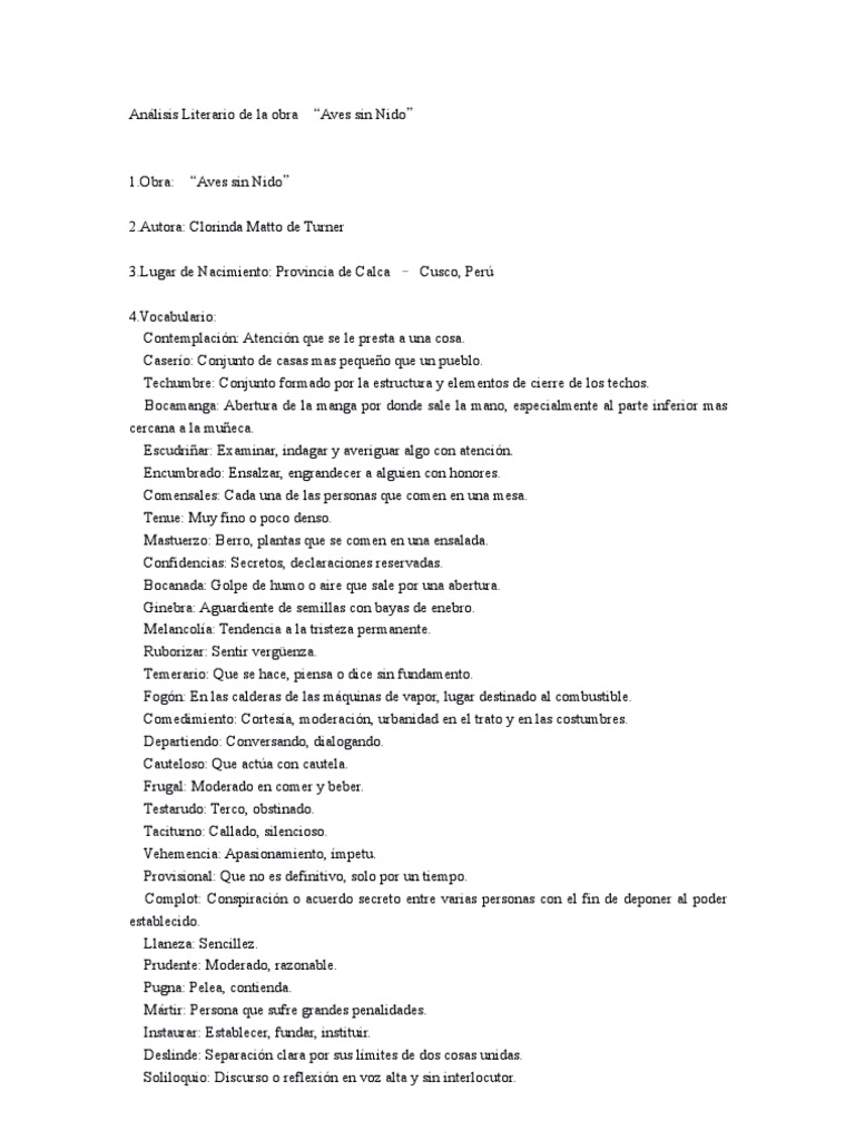 DOC RESUMEN DE LA OBRA AVES SIN NIDO | Fernando Chavez Academia.edu 😈