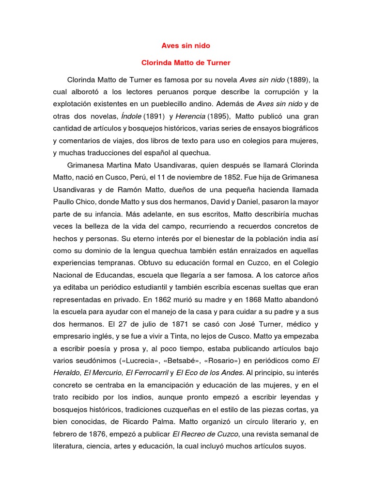___MUNDO EDUCATIVO___: RESUMEN DE LA OBRA AVES SIN NIDO DE CLORINDA ... 😈