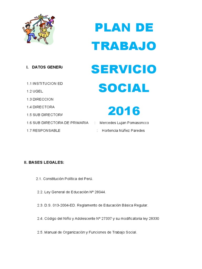 Plan de Trabajo de Servicio Social Año 2016 | PDF | Hospital | Trabajo ... 😈