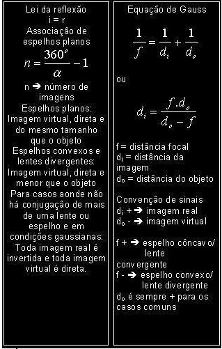 Tópicos de Física Moderna: tabela de Fórmulas Lentes e Espelhos Gaussianos 😈