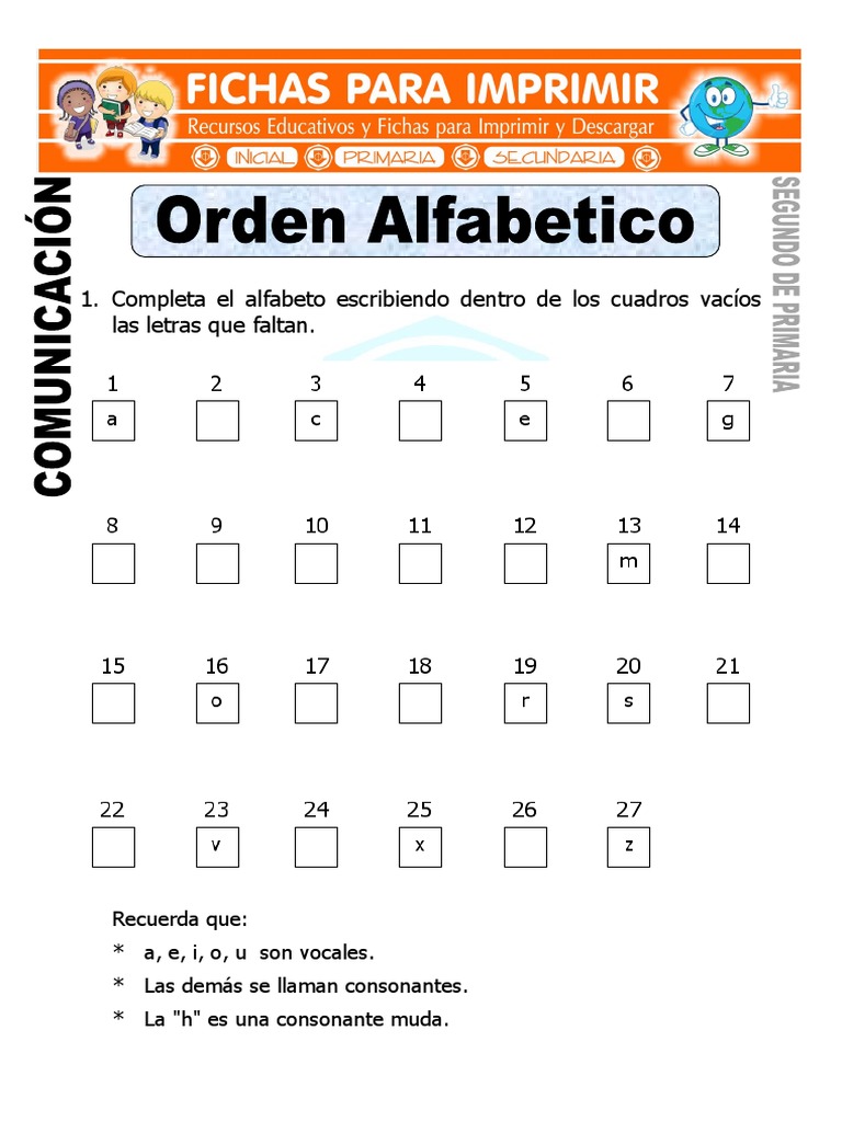 Ficha de Orden Alfabetico Para Segundo de Primaria 😈