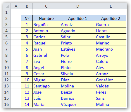 ejercicio Obtener celdas con nombre y apellidos Excel 馃槇