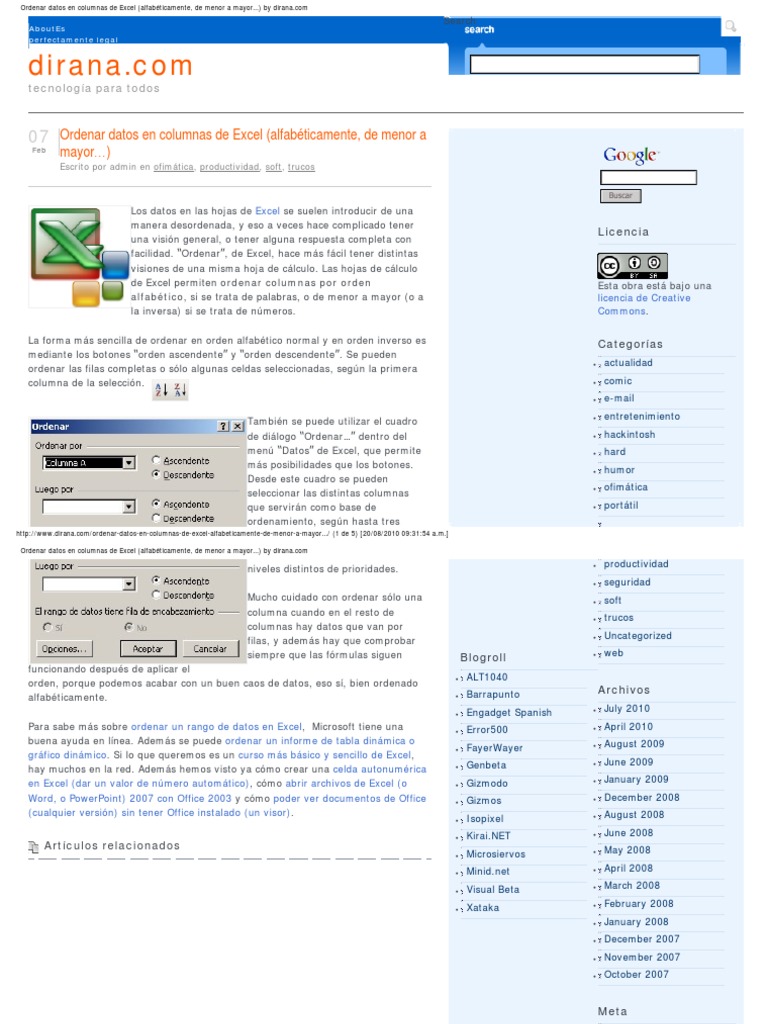 Ordenar datos en columnas de Excel alfabéticamente, de ... 😈