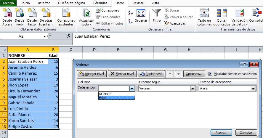 24. Ordenar datos en Excel. Ordenar lista. YouTube 😈