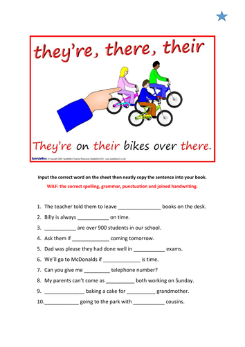 Differentiated worksheet Y4/5 their they re there your you ... π