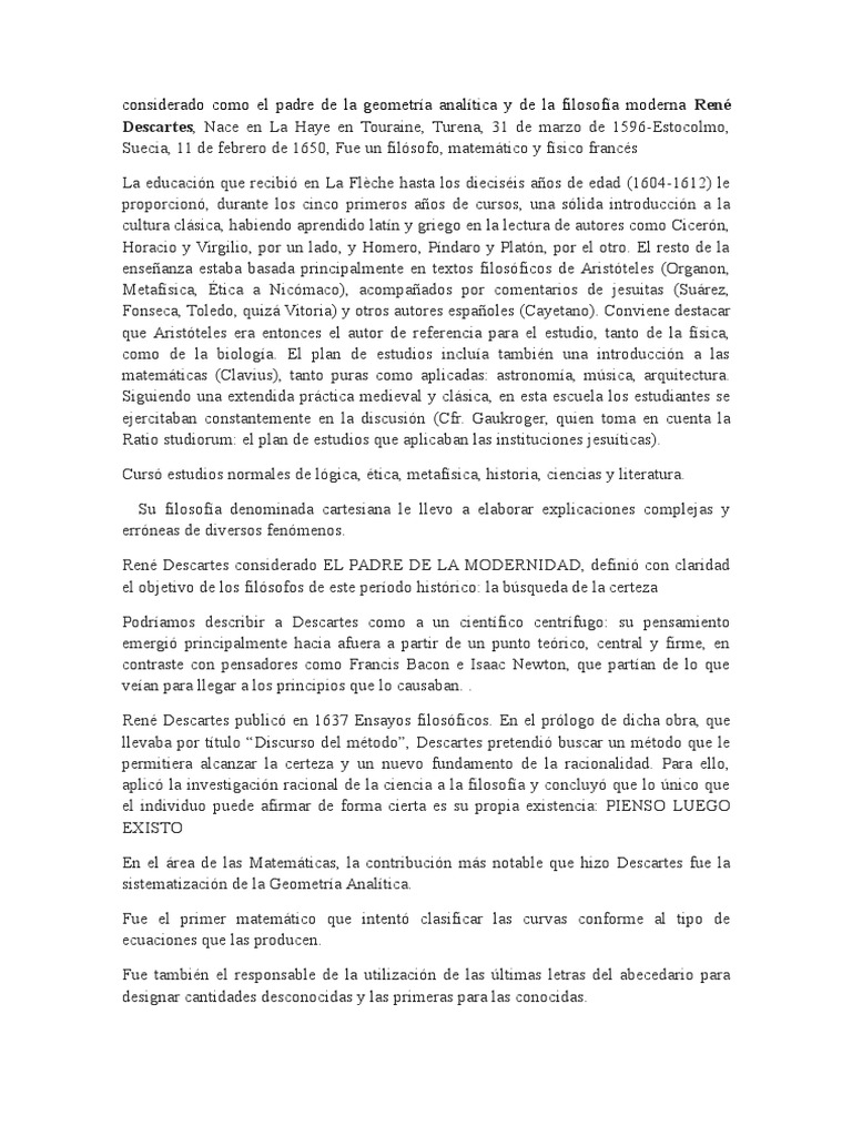 Considerado Como El Padre de La Geometría Analítica y de ... 😈