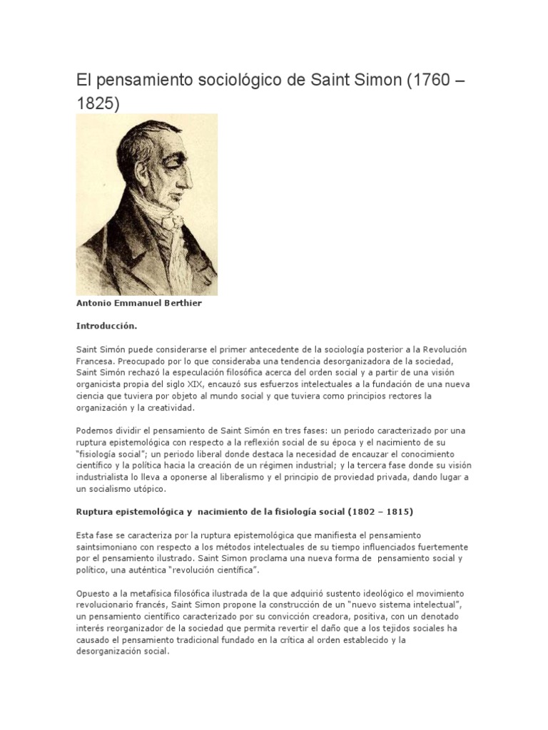 El pensamiento sociológico de Saint Simon | Sociedad | Política ... 😈