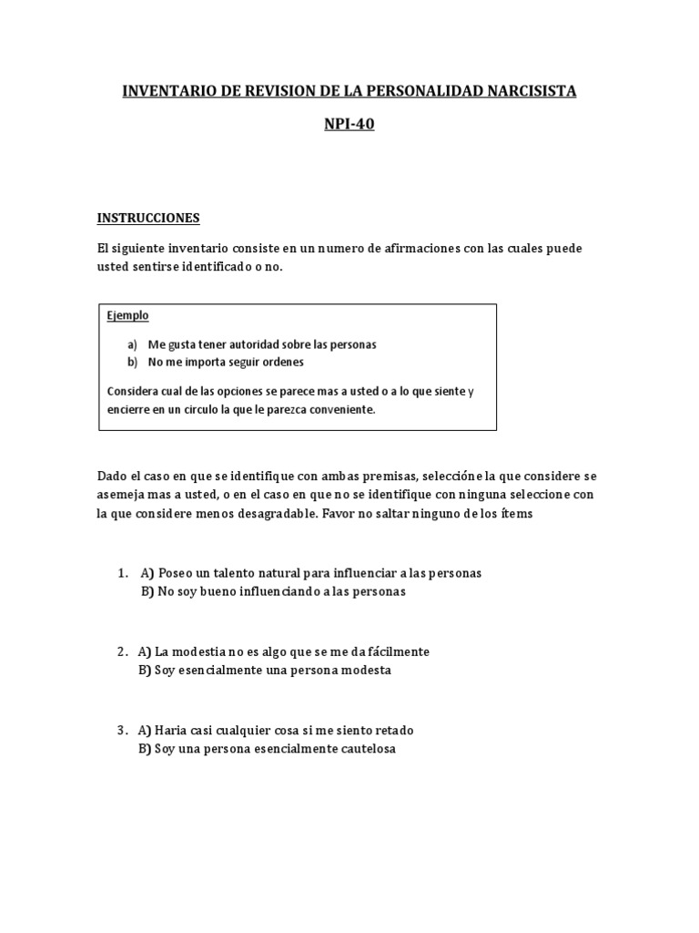 Inventario de Revision de La Personalidad Narcisista | PDF 😈