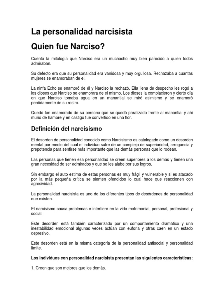 Trastorno de La Personalidad Narcisista Imprimir | PDF | Narcisismo ... 😈