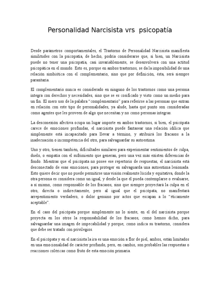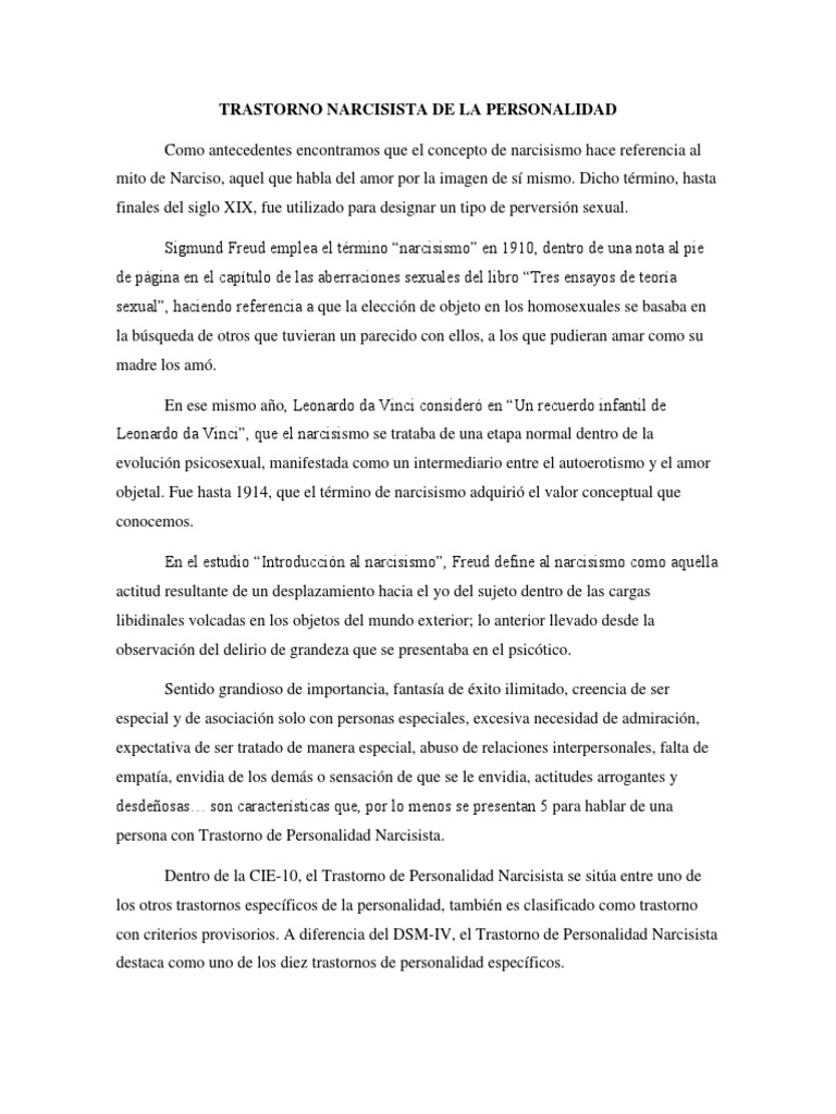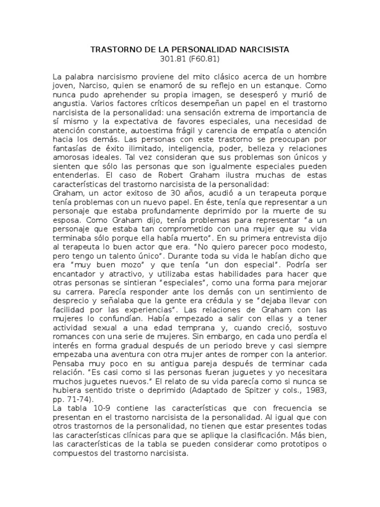 Caso Psicológico Del Trastorno de La Personalidad Narcisista | PDF ... 😈