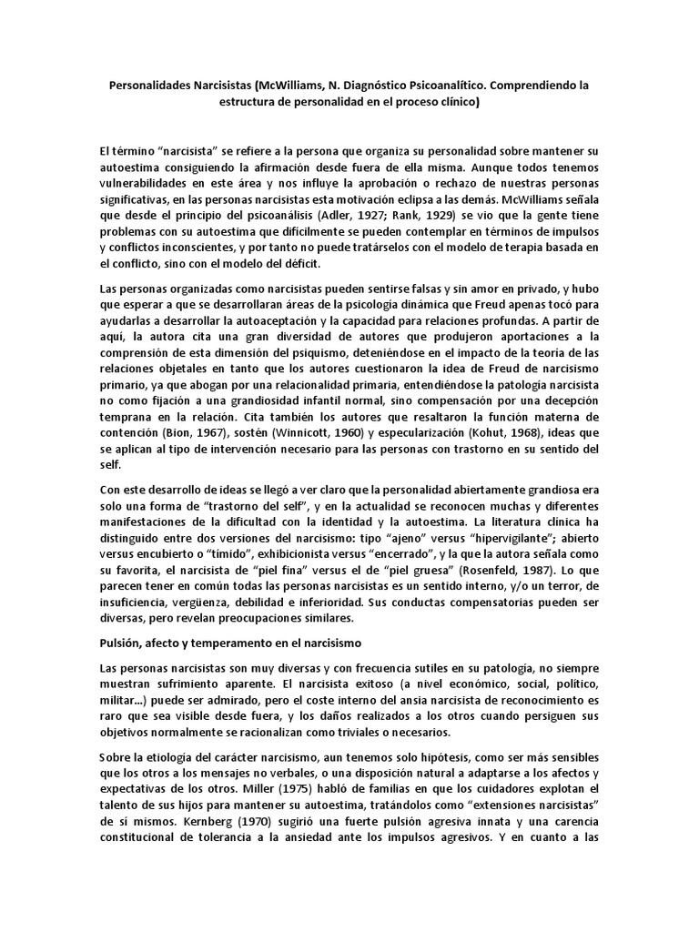 Personalidades Narcisistas Mcwilliams, N. Diagnóstico Psicoanalítico ... 😈