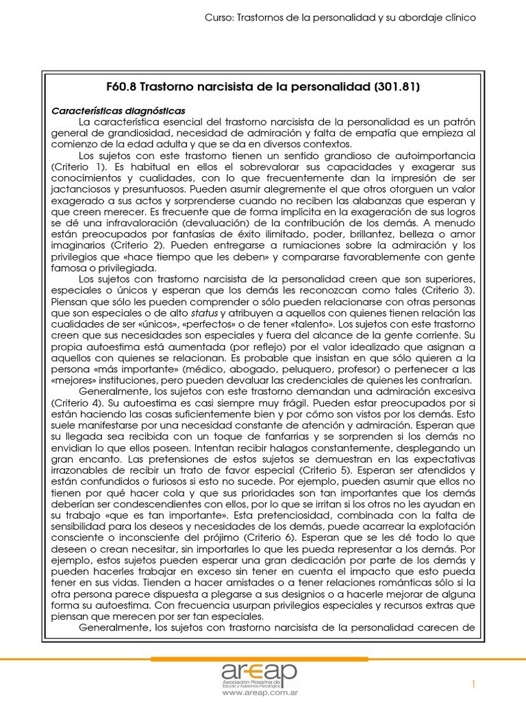 Trastorno Narcisista de La Personalidad Criterios Diagnósticos | PDF ... 😈