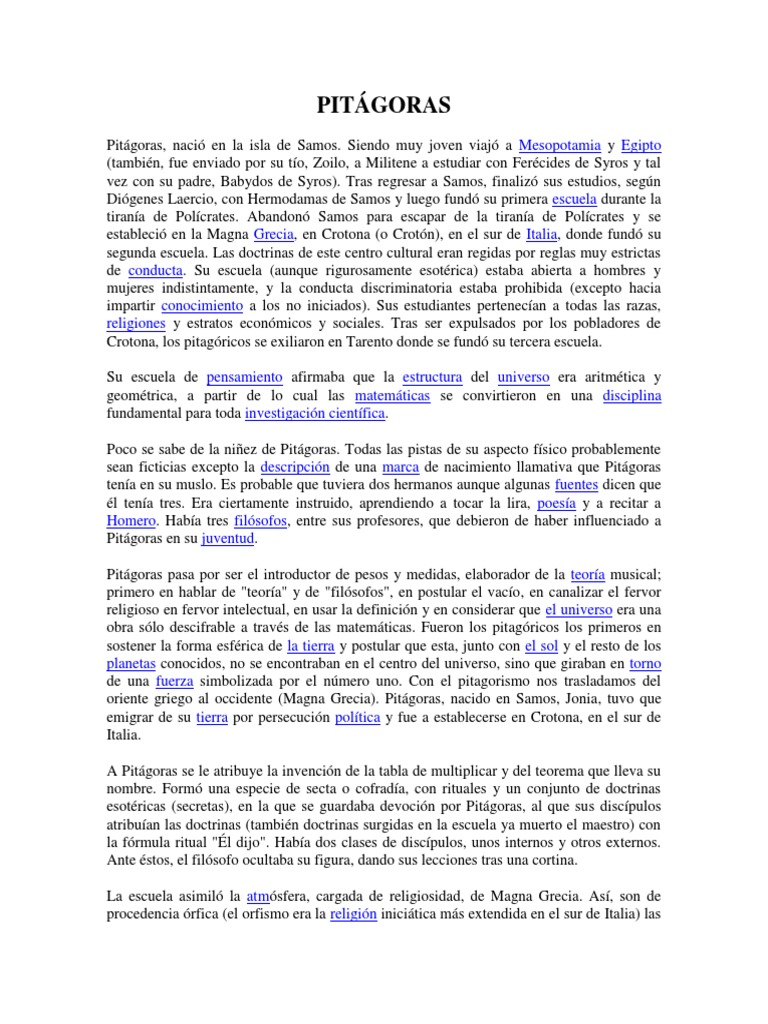 Biografia de Pitagoras.pdf | Pitágoras | Science 😈