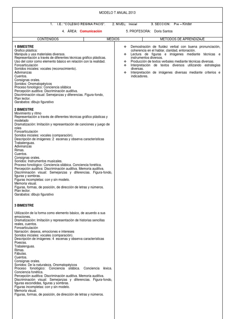 Plan Anual Pre Kinder | PDF | Maestros | Aprendizaje 😈