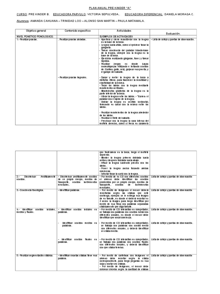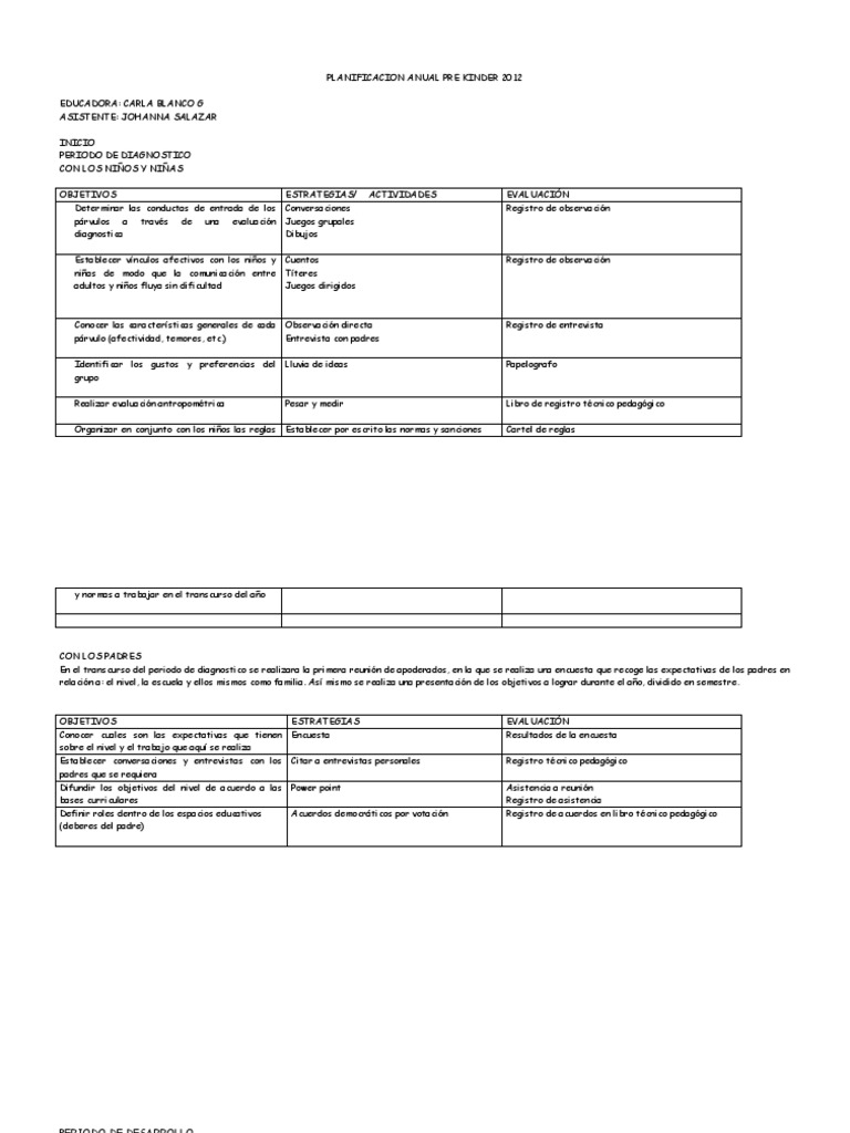 Plan Anual Pre kinder 2012 | Evaluación | Aprendizaje 😈