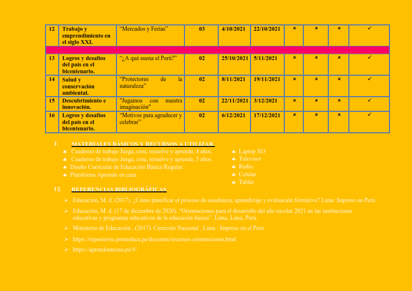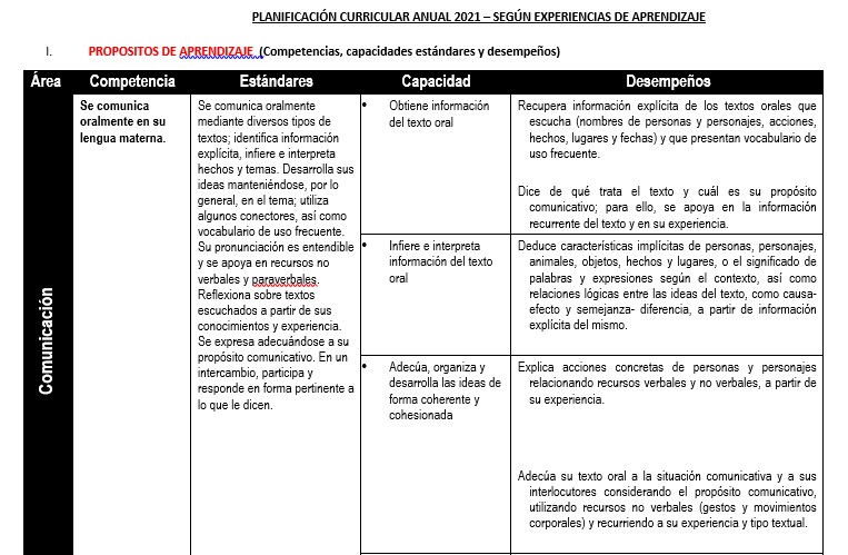 Planificación Anual por Experiencias de Aprendizaje 2021 ~ Materiales ... 😈
