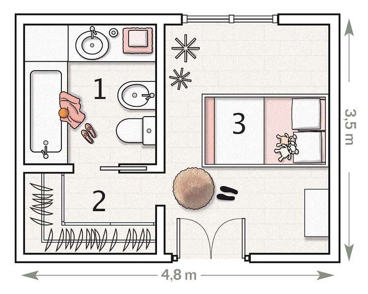 Plano de un dormitorio de niña con baño incorporado ... 😈