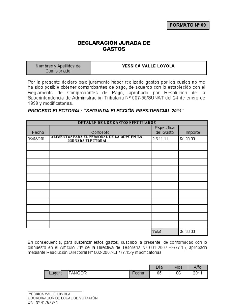Anexo 09 Declaracion Jurada de Gastos 😈