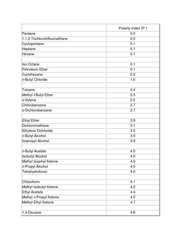 polarity index | Solvent | Tetrahydrofuran | Free 30 day ... π