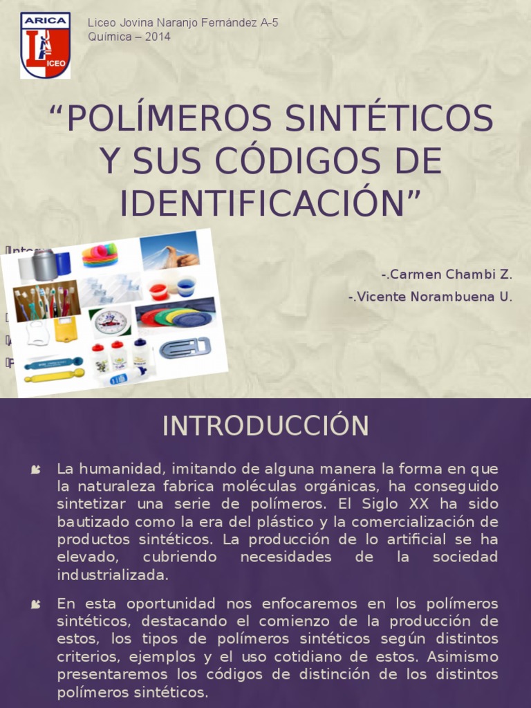 Polímeros Sintéticos y Sus Códigos de Identificación | Polímeros | El ... 😈