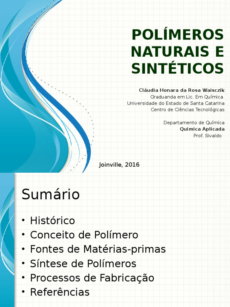 Polímeros. Conceitos, Estrutura Molecular, Classificação PDF Nívea ... 😈