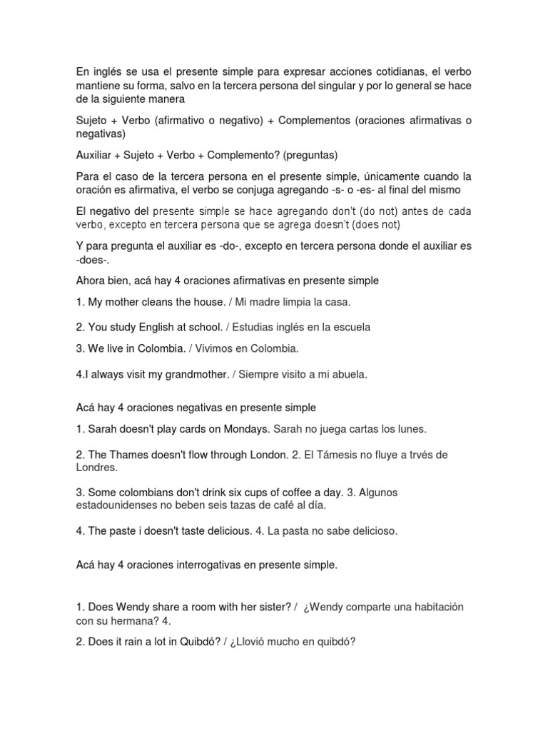 En Inglés Se Usa El Presente Simple Para Expresar Acciones Cotidianas ... 😈