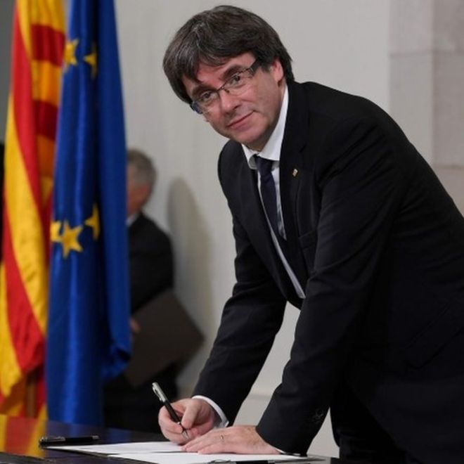 El presidente de Cataluña firma una declaración de independencia y ... 😈