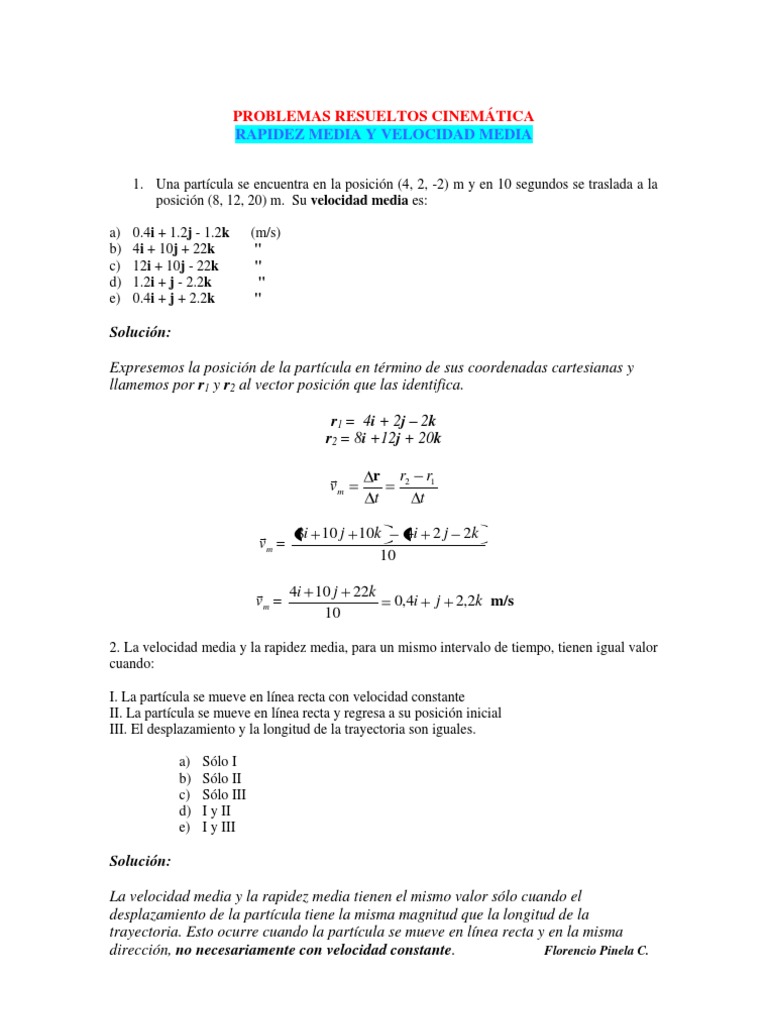 CINEMÁTICA I PARTE EJERCICIOS DESARROLLADOS IMPRIMIR ... 😈