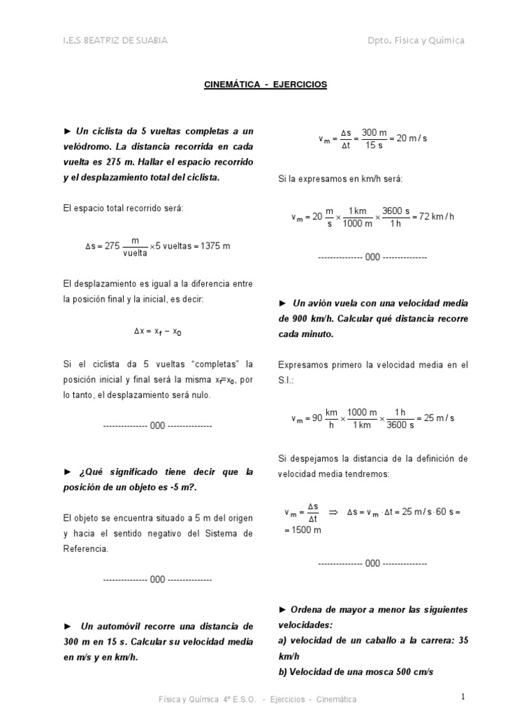 Ejercicios Cinematica 4 ESO | Cinemática | Movimiento Física 😈