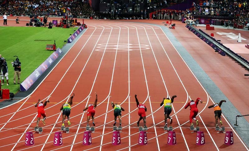 Salida de una prueba de velocidad de atletismo | artehistoria.com 😈