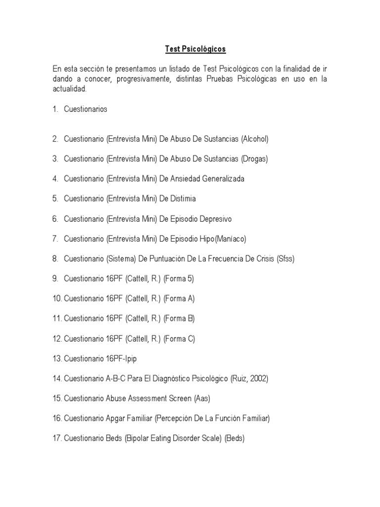 Listado de Pruebas Psicometricas | Adultos | Adolescencia 😈