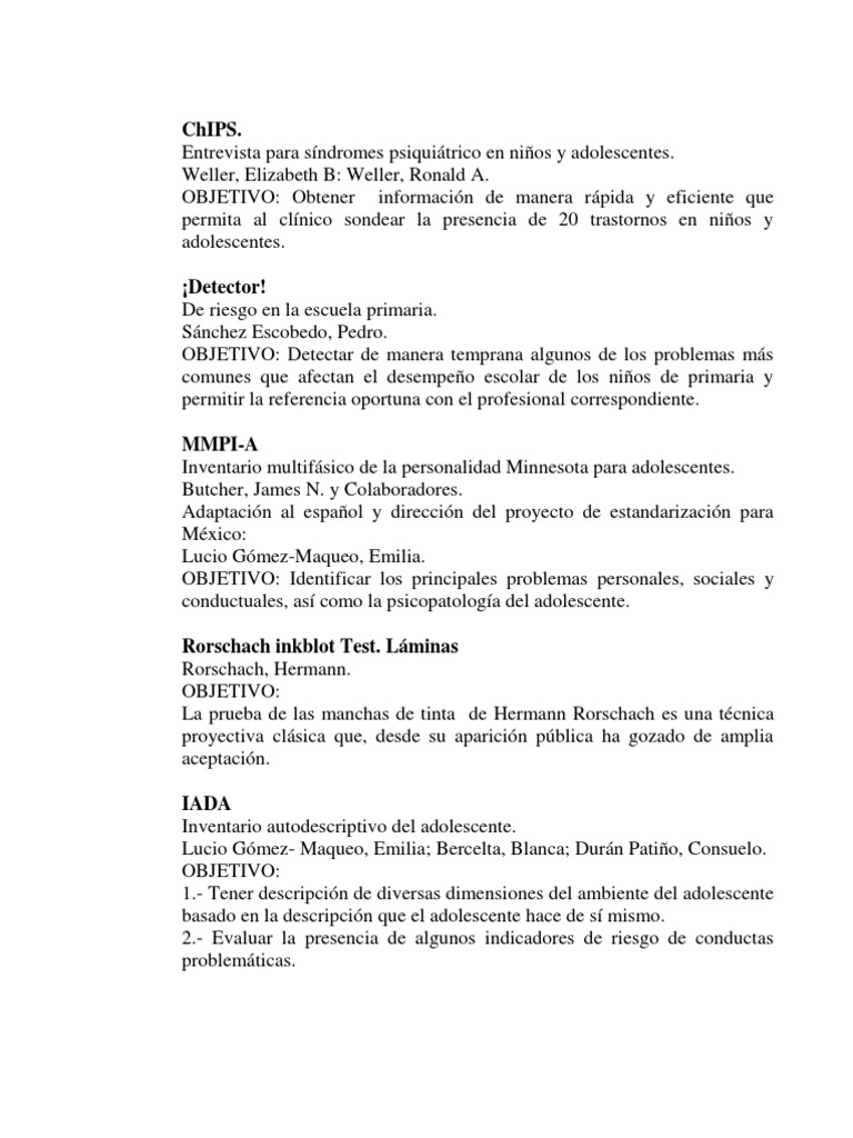 Pruebas Psicológicas | Instituto de Psiquiatria del Estado de Baja ... 😈