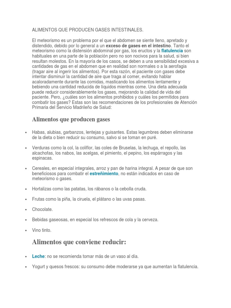 Alimentos Producen Gases Intestinales: Alimentos ... 😈