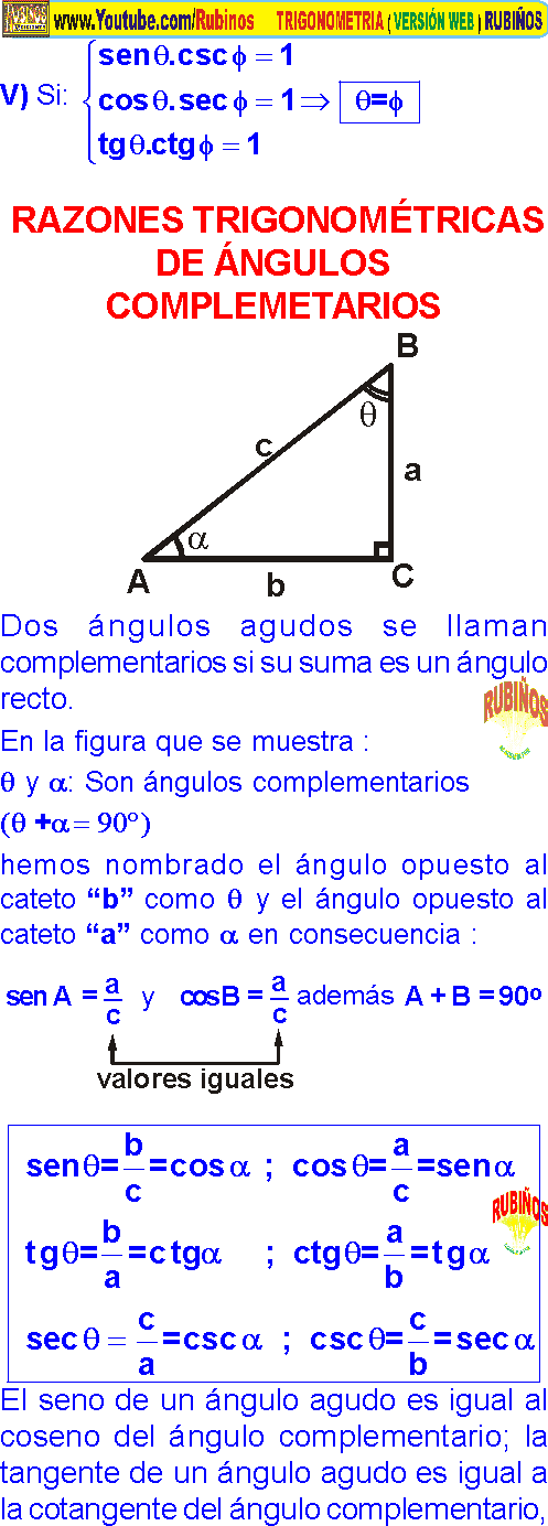RAZONES TRIGONOMÉTRICAS DE ÁNGULOS COMPLEMENTARIOS YouTube 😈