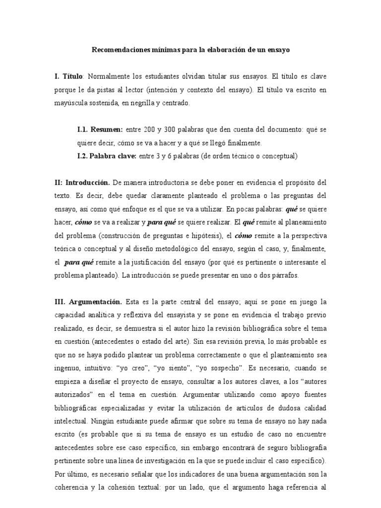 Recomendaciones Minimas Para Un Ensayo | Ensayos ... 😈