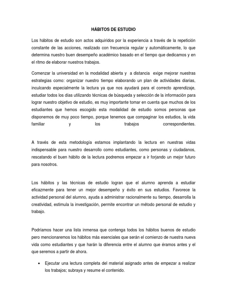 Ensayo Habitos de Estudio | Lectura proceso ... 😈