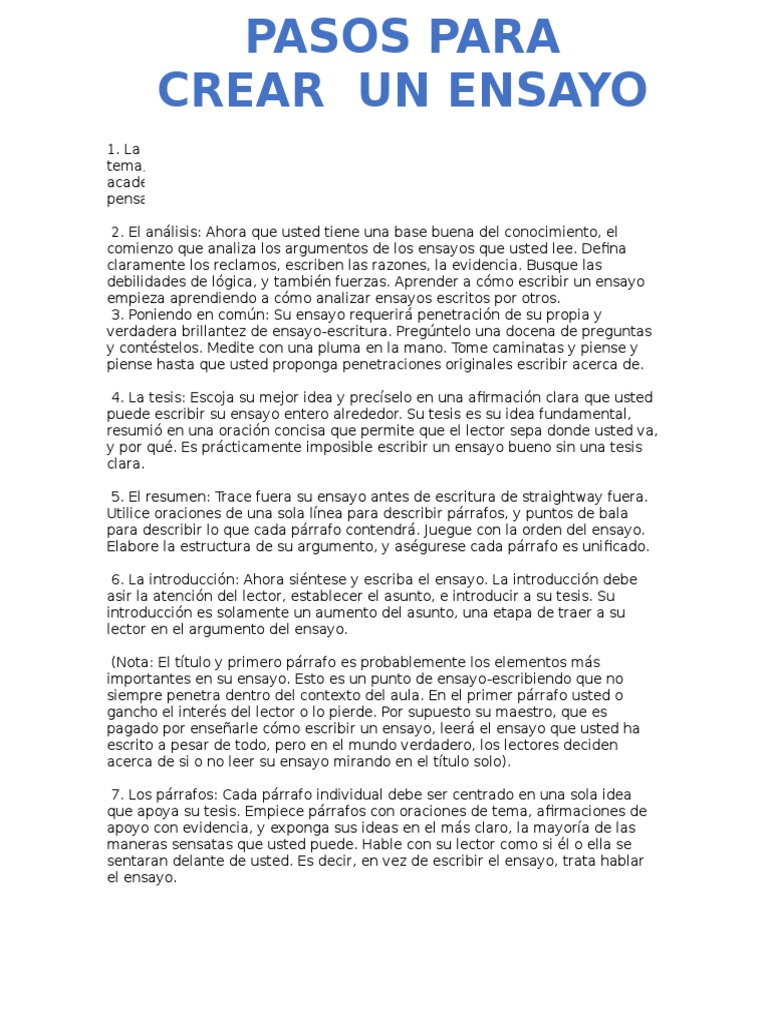 Pasos Para Crear Un Ensayo | Ensayos | Ciencia cognitiva 😈
