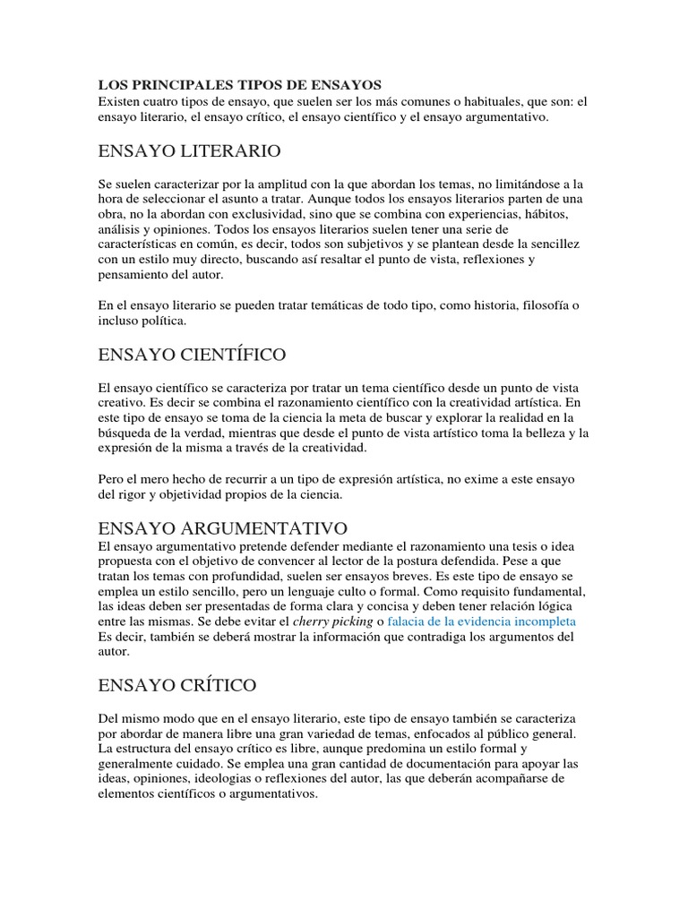 Los Principales Tipos de Ensayos | Ensayos | Teorías ... 😈