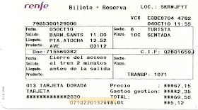 The traveler s drawer: RENFE. Billete + Reserva tren AVE 03133 de ... 😈