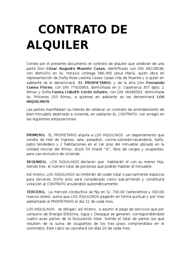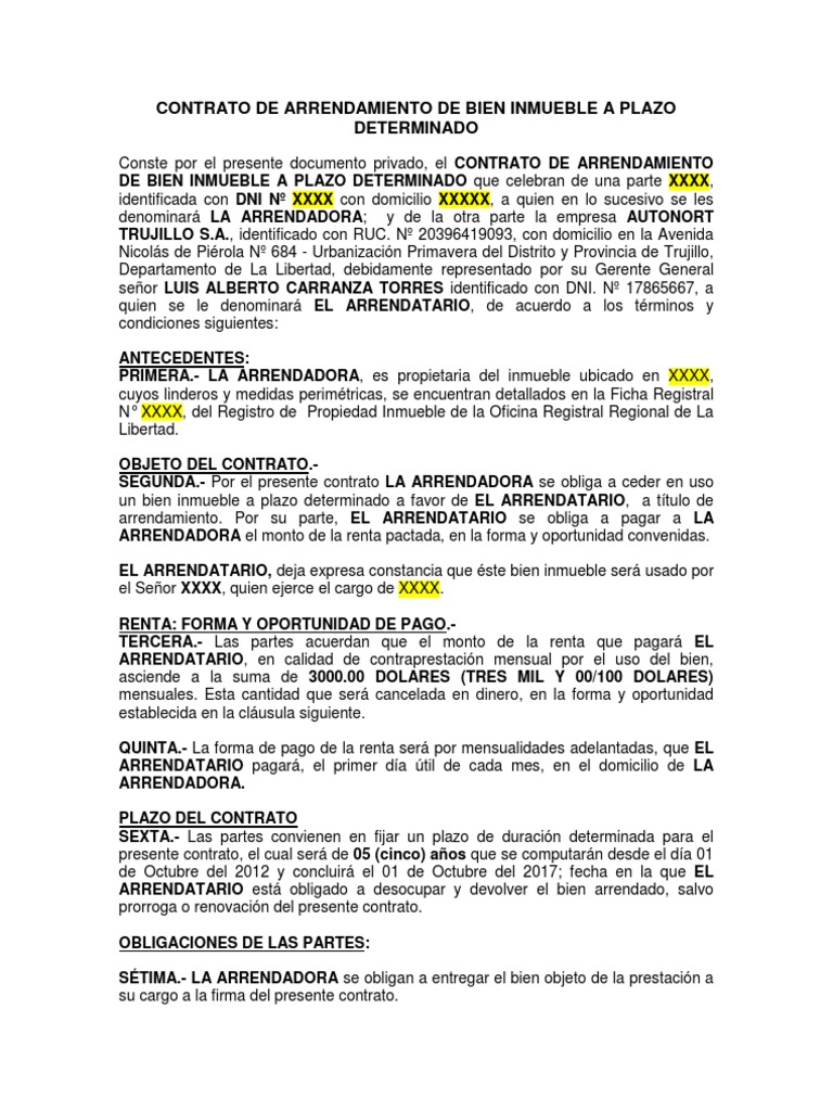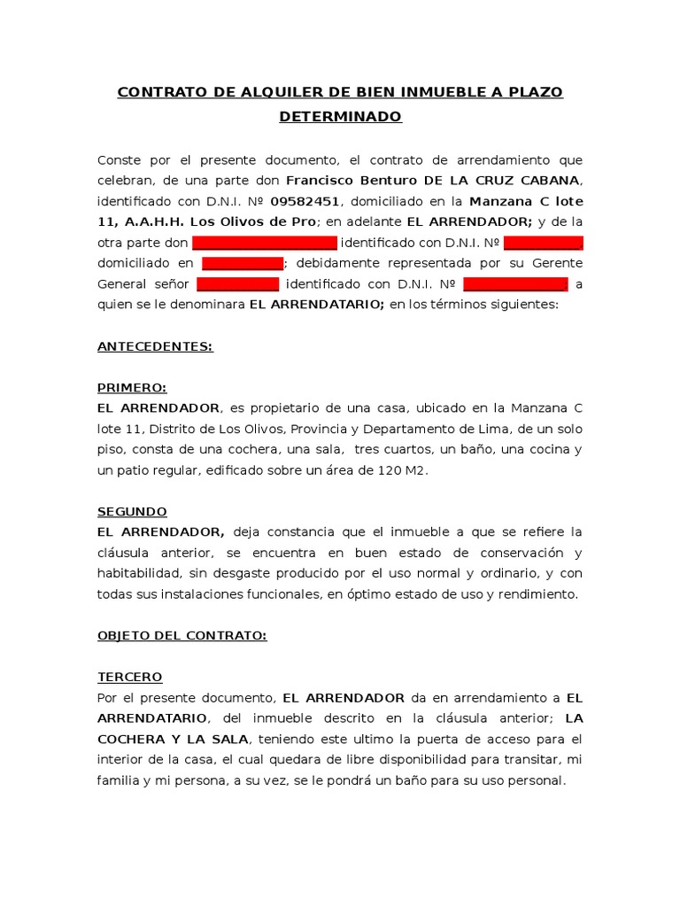 Contrato de Alquiler de Bien Inmueble a Plazo Determinado 1 | Alquiler ... 😈