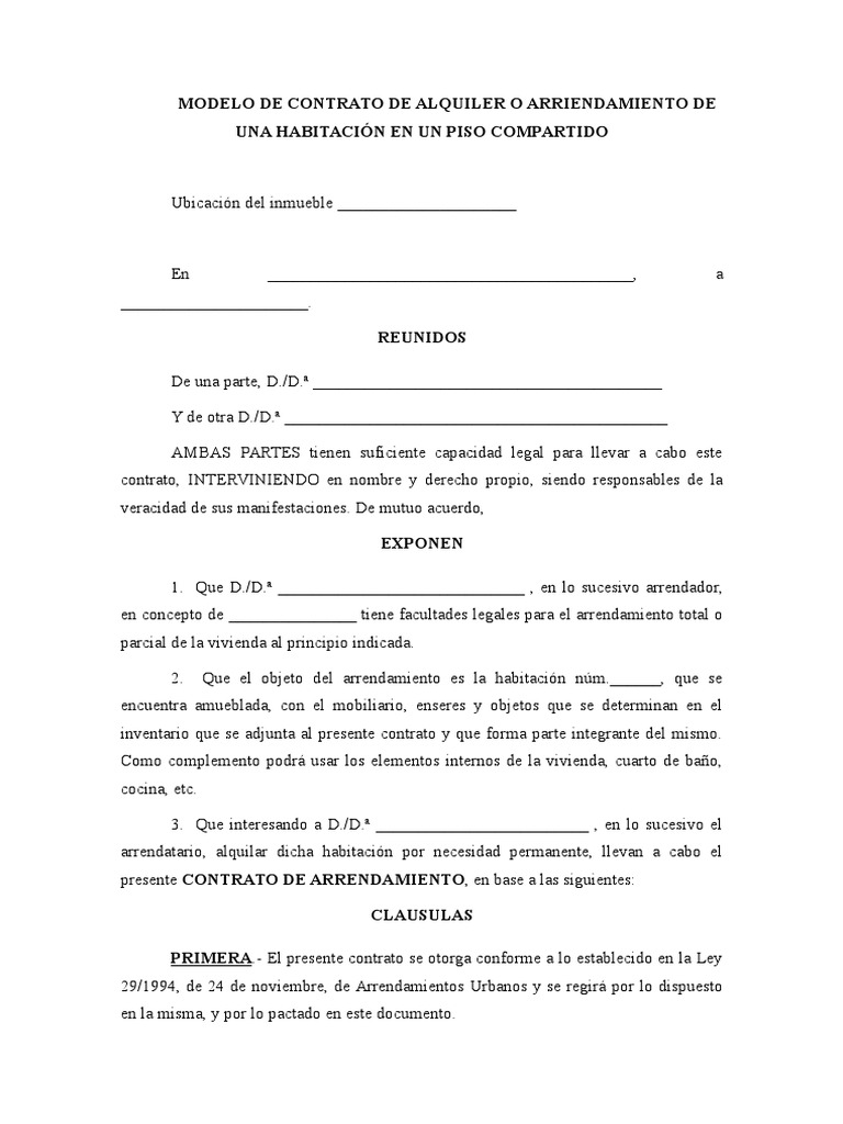 Modelo Contrato Alquiler Habitación | Alquiler | Gobierno 😈