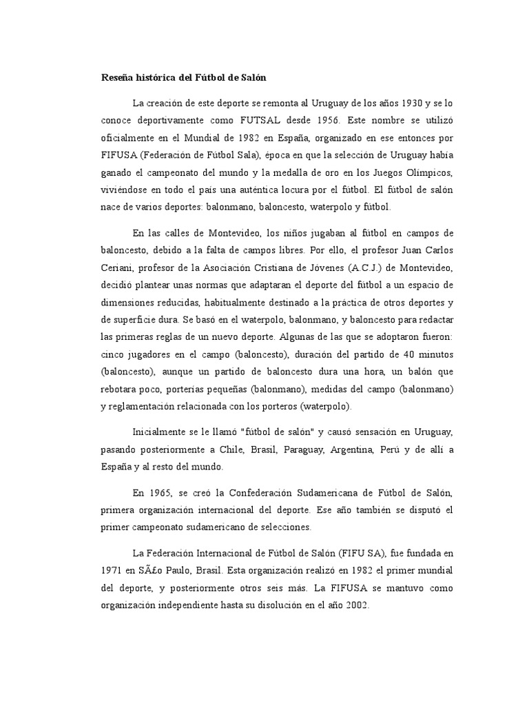 RESEÑA HISTORICA DEL FUTBOL SALA El fútbol de salón ... 😈