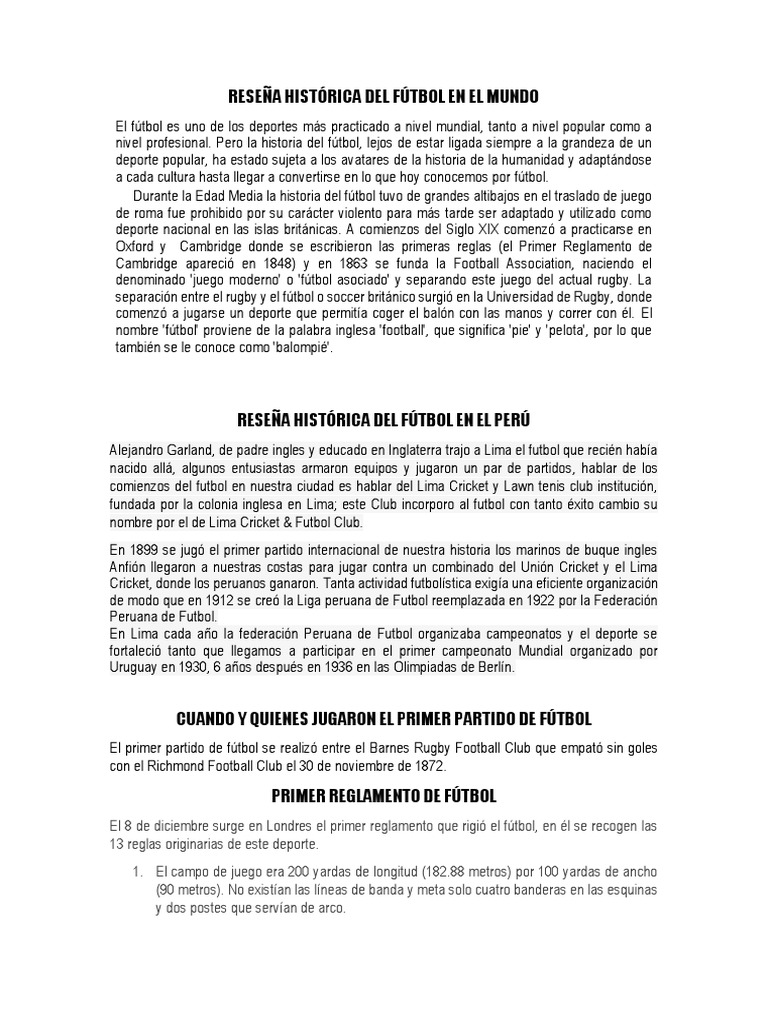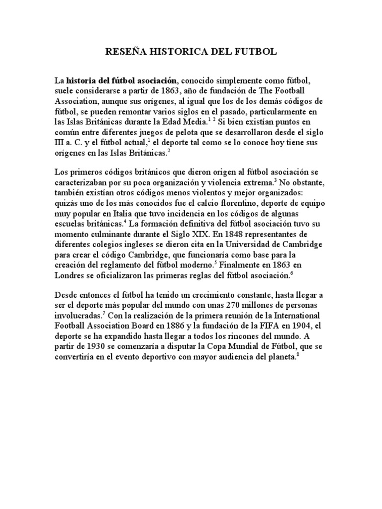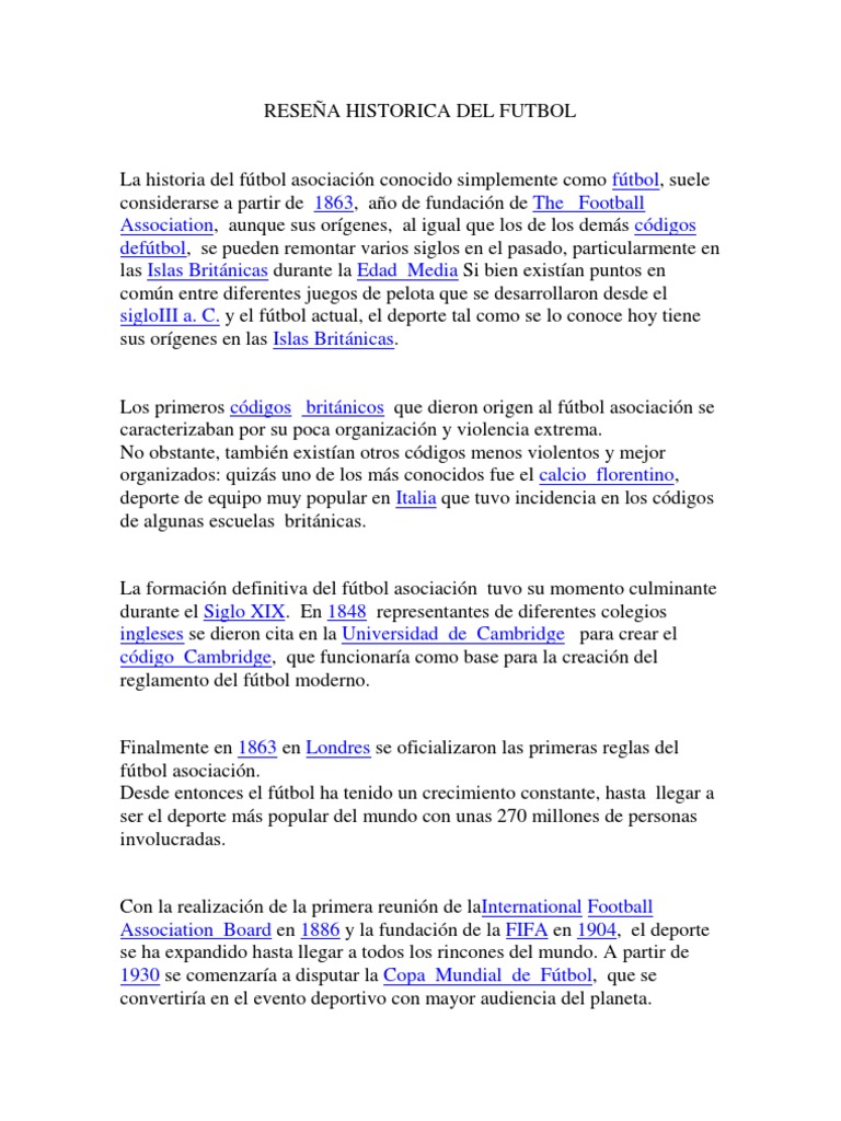 RESEÑA HISTORICA DEL FUTBOL | Asociación de Futbol | Deportes 😈